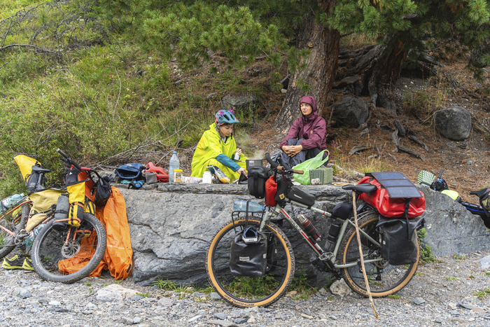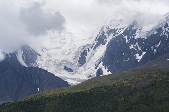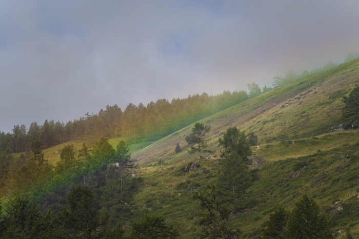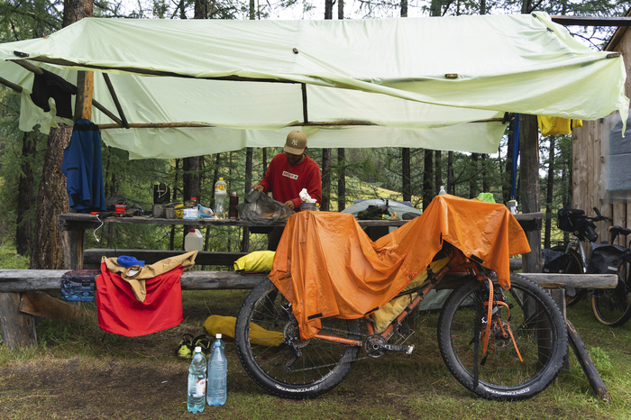 На вершину перевала забрались в аккурат к дождю. Благо, его вершину венчает беседка. Там и сварили обед – спагетти с чем-то, уже не помню. Кажется, это были просто спагетти с паштетом на хлебе. Что-то в этом стиле. Ну и куда без пирожков из кафе через дорогу. Жаль, что на Алтае вся выпечка жареная, хотелось печёной.