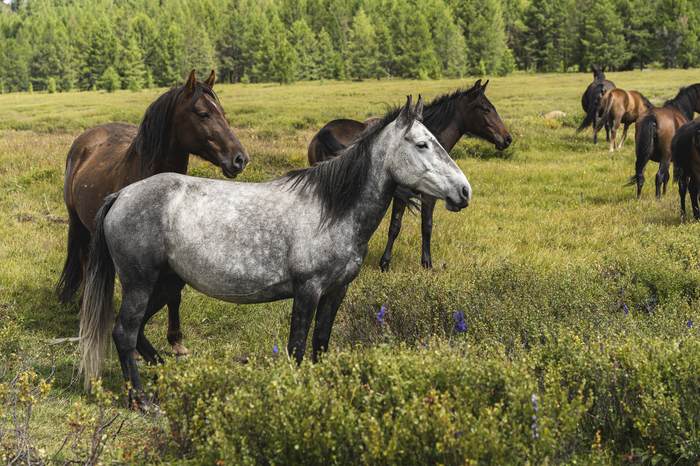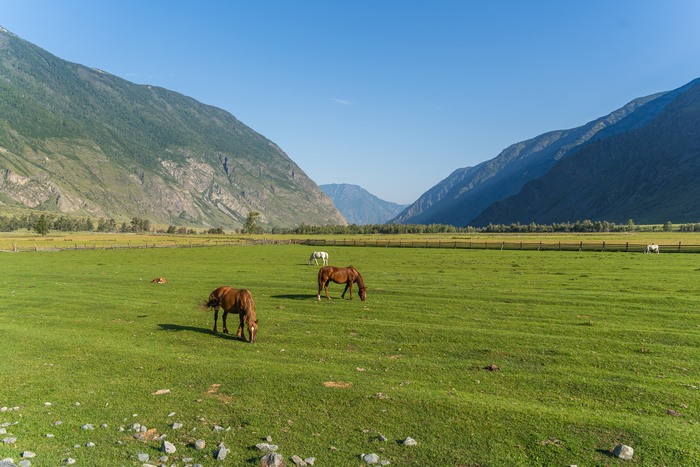 Ночевку скрасило стадо лошадей, пасущееся на поляне, и погоняемое собаками. Одна увязалась за нами чуть ли не с Акташа, а вторая прибежала с компании, отдыхающей у самой ГЭС.