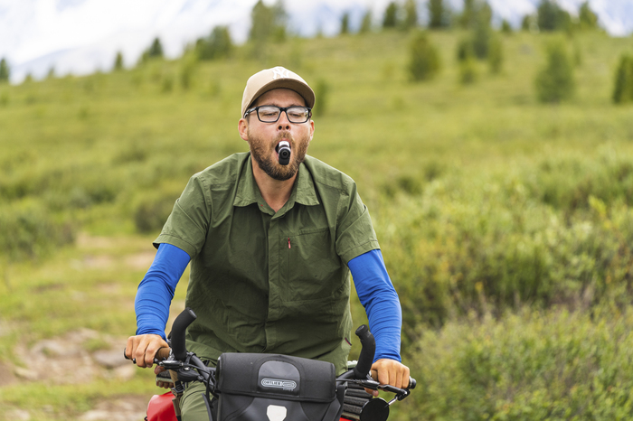 Это утро было уже теплым и солнечным. Нас ждал Улаганский перевал. И честно, я его даже не заметил. Не знаю почему, физуха вроде та же что и в 2022. Может причина в том, что постоянно ждал девчонок и особо не напрягался?