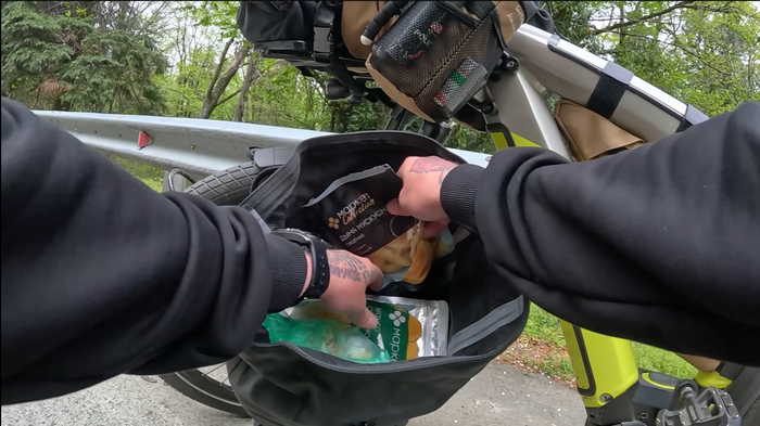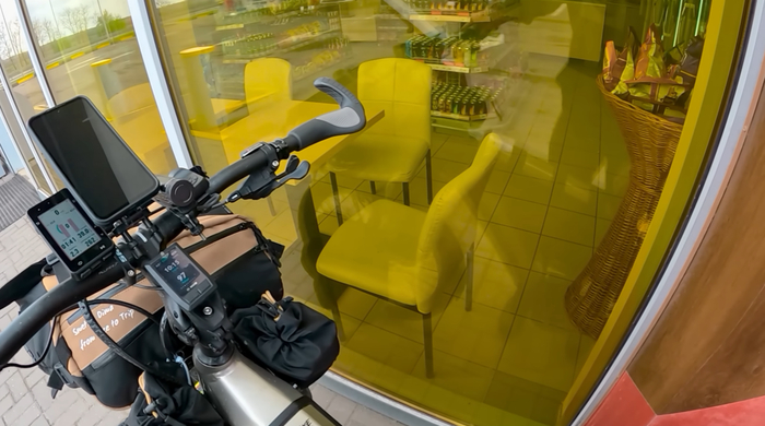 По приезде на большую парковку гипермаркета «Глобус» я начал укомплектовывать свой велосипед всеми нужными сумками. Тем временем, ко мне подъехали подписчики из закрытого чата и предложили проехаться вместе.