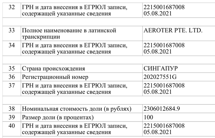 Ничего из этого так и не вышло. Однако вышло так, что компанию "ВР-Технологии" купили инвесторы из Абу-Даби, Фонд стратегического развития (SDF) в августе 2021-го через сингапурский офшор Aeroter PTE Ltd. Что интересно, заявлялось о покупке 50% акций, однако реестр говорит что Aeroter стал полным владельцем "ВР-Технологий":