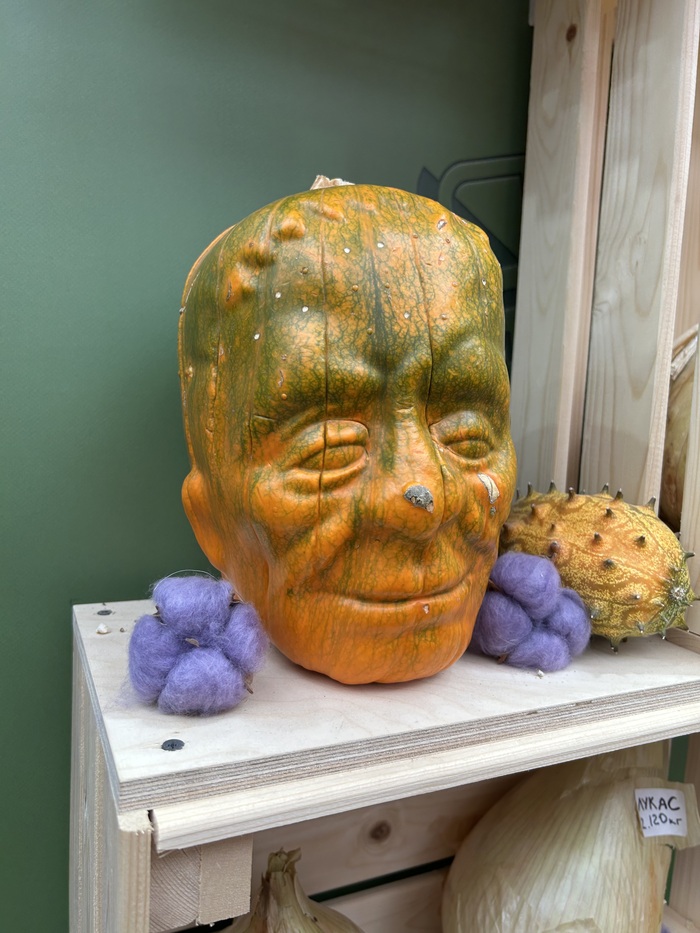 Я до последнего откладывала поездку в «Аптекарский огород», но после поста Гибель Вульфа, было принято решение, что надо ехать сейчас, а то можем не успеть. В павильоне с большими овощам мы её не нашли, я расстроилась, подумала, что не судьба, но оказалось, что чуть дальше есть еще второй павильон, исключительно под тыквы, и там-то и был заветный Кисамор. Я скакала как коза и радовалась как ребенок, ощущения были, как от встречи со звездой :D