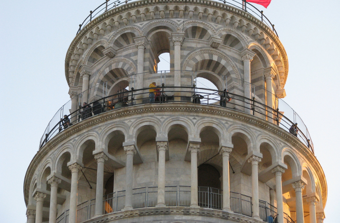 Обычно вход туда закрыт. Но только не для нас. Преодолев несколько метров, мы оказываемся на самой высокой смотровой площадке башни. Выше только флаг Пизанской республики.