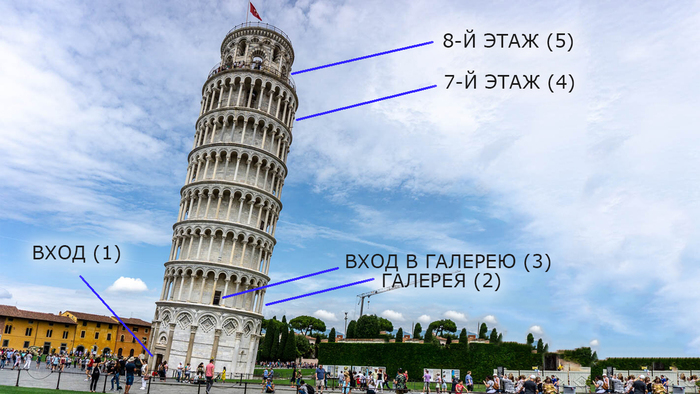 Это не самая высокая точка Пизанской башни. Ещё выше находится колокольня. Вот туда мы и направимся.