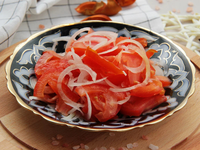 «Аччик-чучук» в Ташкенте, или «Шакароб» в Коканде – самый популярный салат в Узбекистане, который всегда подают к плову.