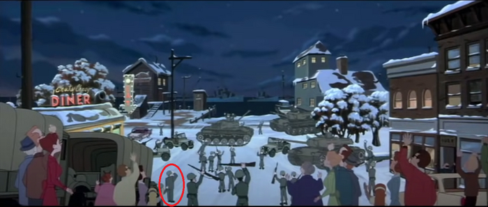 В мультфильме "Стальной гигант" (1999) после кульминации весь город ликует, кроме генерала Рогара, который отдает честь герою.