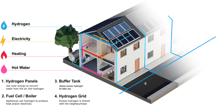 Франция система хранения Н2 от избыточной генерации СЭС жилого комплекса