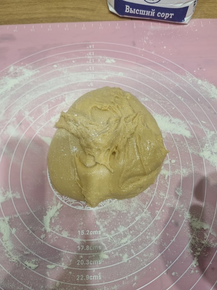 Достал коврик, припылил мукой, с помощью силиконовой лопатки выковырял тесто из миски.