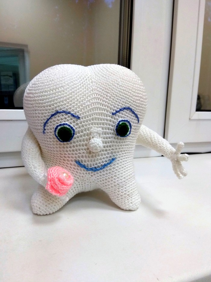 Так появился третий зуб. Он самый безопасный - нет бусинок-глазок и проволочек в ручках.