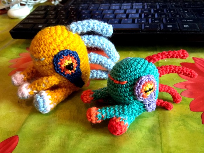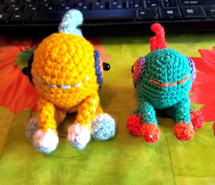 Жёлтый - самый первый мой мурлок. Он немного болеет - линять начал, поэтому и жёлтый.