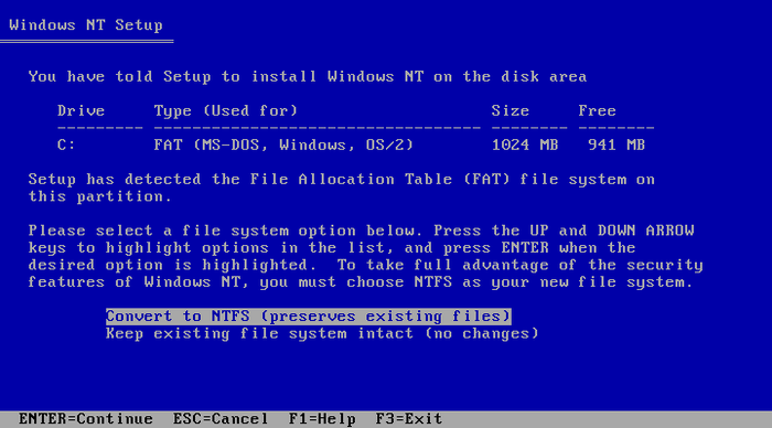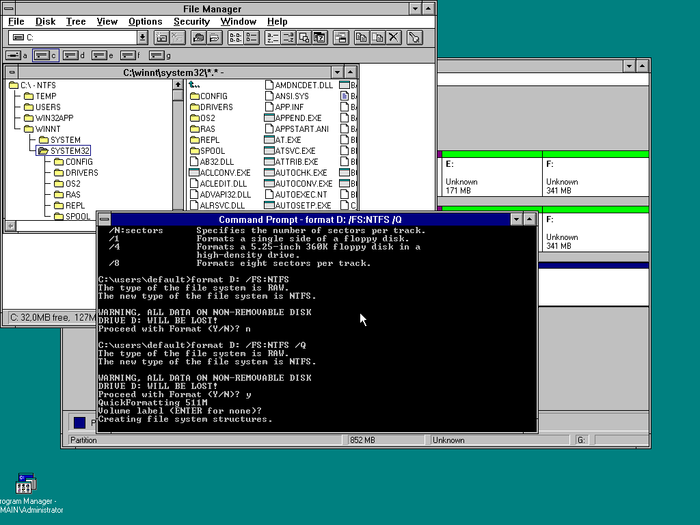 Windows NT позволила создавать на диске 4 основных раздела, предупреждая о недоступности данных из MS-DOS.