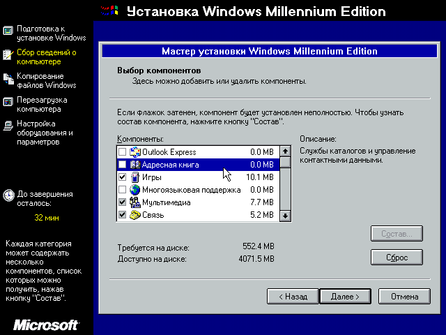 Из нового хочется отметить поддержку последовательной шины USB, которая тоже пришла из Windows 9x. От туда так-же пришла поддержка сканеров и камер. Система поставляется с предустановленным DirectX 7.0. Если верить Википедии, то он дал нам аппаратную поддержку преобразований, обрезания и освещения.