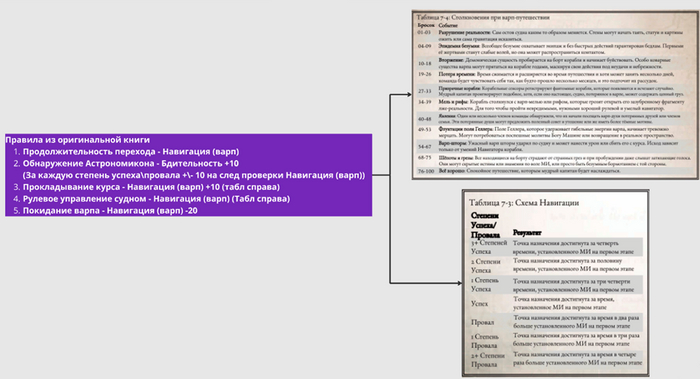 А так существует ещё более расширенные игромеханики Вапр переходов в «Настольной книги навигатора». Там и особенности варп течений в разных регионах простора Коронус, ритуалы для успешного перелёта, более расширенные механики столкновений в Варпе и т.п. В общем, почитаете.