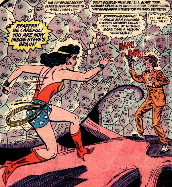 Во второй истории генерал Дарнелл просит Чудо-Женщину охранять Стива Тревора по пути из штаба военной разведки к Пентагону – Стив везёт в Пентагон ценную информацию о результатах испытания сверхмощного реактивного самолёта-ракеты. По пути на Стива и Диану нападает банда местного криминального авторитета, Угольника (Angle Man). Бандиты связывают Чудо-Женщину её же лассо и ширяют Стива сывороткой правды, стремясь выведать военные секреты – но стальная сила воли Стива Тревора сопротивляется подлому химикату. Тогда Угольник со своей бандой использует уменьшающий луч, уменьшается и забирается Стиву в голову, чтобы достать сведения напрямую из мозга. Диана в это время выпутывается из лассо, использует уменьшающий луч на себе и тоже входит в голову Стива, где быстренько обезвреживает всех злодеев прежде, чем они находят участок мозга с нужной информацией. После этого остаётся только выбраться из головы полковника Тревора и увеличиться до нормального размера. Диана и не думала, что ей доведётся ТАК близко познакомиться со Стивом.