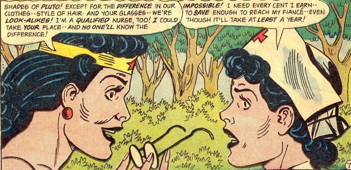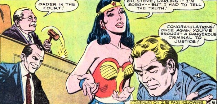 Что заставило Чудо-Женщину стать предательницей? Ответит комикс Wonder Woman #164 за август 1966 года. Чудо-Женщину настигают две тревожные новости. Новость номер раз – в неё влюблён генерал Дарнелл из штаба военной разведки. И номер два – её возлюбленный, Стив Тревор, отправился на полигон, испытывать экспериментальный самолёт, который уже убил одного пилота-испытателя (не Хэла Джордана...и даже не Ларри Трейнора). Разумеется, во время испытаний что-то идёт не так, и Стив пропадает вместе с самолётом. Диана ищет повсюду, с использованием амазонских технологий, но увы – ни следа Стива. Потосковав, Чудо-Женщина всё-таки принимает предложение генерала Дарнелла, и собирается уже играть с ним свадьбу – но у алтаря не может сказать заветное «я согласна», всё вспоминая о Стиве. Сжалившись, генерал её отпускает.