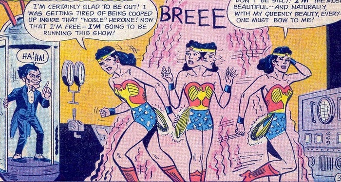Во второй истории Чудо-Женщина расследует наглое преступление: фанаты презентовали необычный арт-объект в её честь, статую Чудо-Женщины, скрафченную из одноцентовых монеток, но эту статую похитил Доктор Психо и заменил своим собственным уродливым изваянием. Психо пообещал вернуть статую, если Диана явится за ней лично – но это была ловушка. Как только Чудо-Женщина объявляется, Психо шарахает её лучом разделения, который превращает одну Чудо-Женщину в трёх: одну нормальную, одну тираншу и одну тщеславную. Две Чудо-Женщины портят имидж третьей, и собираются её вообще угробить, приковав её к киту и отправив морского великана на дно морское. Но настоящая Чудо-Женщина всё-таки выкручивается из оков, находит тщеславную Диану, играя на её эго, уговаривает помочь скрутить Диану-тираншу, а затем заходит с ними под разделяющий луч, и второй залп луча соединяет трёх Диан в одну. А Доктора Психо задерживает Стив Тревор.