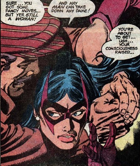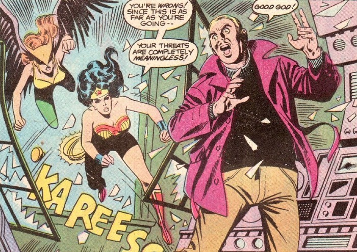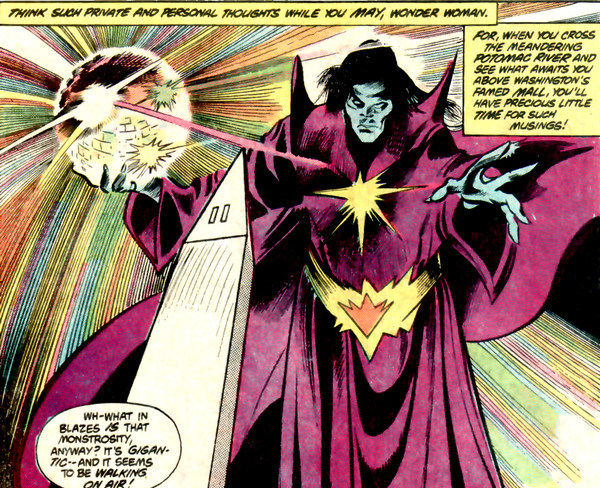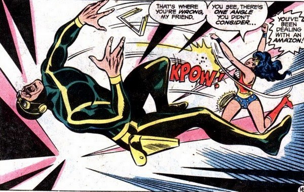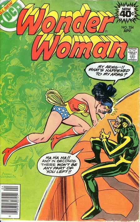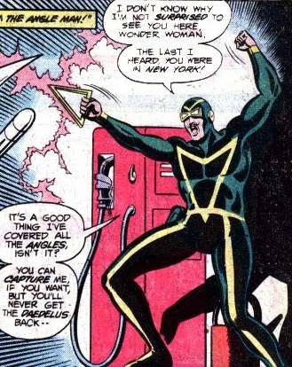 А впереди новые встречи со старым врагом в комиксе Wonder Woman #254. В обители богов бомбит Марс. «Да Чудо-Женщина просто жаждет славы, вот и выпендривается – то одного спасёт, то другого, то целый автобус, то астронавтов, то ещё кого. Почему она всё ещё геройствует? Она же проиграла в турнире!». Афродита напоминает – так-то победительница турнира погибла, не прогеройствовав и месяц. «А ещё Диана самовольно покинула Райский остров, лишившись регалий, тогда как это было дозволено только Чудо-Женщине! Её нужно наказать! Я этим займусь!». Марс уходит, а Афродита и Афина только разводят руками и обещают друг другу присмотреть за ним. И вот, у сидящего в углу в тюрьме уголовника Угольника появляется новая идея, в какой бы угол загнать Чудо-Женщину! Вскоре поступает тревожное сообщение – Угольник вырвался на свободу (его космический угольник восстановился) и угнал шаттл!