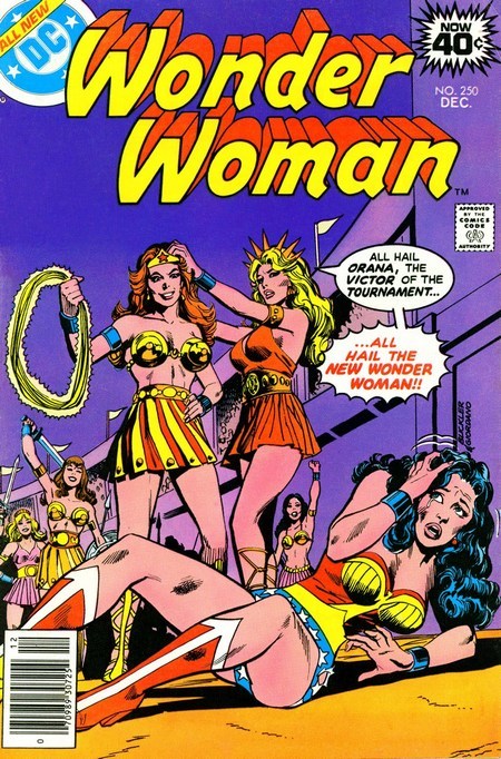 В комиксе Wonder Woman #250 всего одна история, зато какая! Чудо-Женщину срочно вызывают на Райский остров. Там громко выступает амазонка по имени Орана. Она требует провести новый турнир для определения того, кому быть Чудо-Женщиной. Возражения о том, что Чудо-Женщина уже есть, Орана не принимает: «Диана давно уже чудоженствует, пора что-то менять!». Ну а фигли. Закон такой есть, по закону амазонки ей отказать не могут. Да будет турнир! И он начинается. Первая его часть – махач «все против всех». Орана демонстрирует совершенно потрясающую физическую силищу, а вот со скиллами у неё беда. Диана уверена, что легко справится даже без оружия. Тем не менее, Орана пока избегает стычек с Дианой. Торопиться ей некуда, турнир будет длиться четыре дня. После массовой драки на ногах остаются шесть амазонок, в числе которых Орана и Диана. Следующее соревнование – испытание водой. Нужно день продержаться в бушующем (волею Нептуна) океане, среди морских тварей, и выныривать для подышать можно только раз в час. Диана фокусируется на том, чтобы избегать подводных тварей и не дать утонуть другим амазонкам, Орана же тварей убивает и заботится только о себе.
