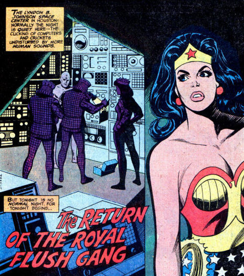 Тема карточных злодеев поднимается в комиксе Wonder Woman #256. С места в карьер – Чудо-Женщина засекает подозрительную активность в здании НАСА ночью. Решив проверить, что к чему, Чудо-Женщина видит старых знакомых – банду «Флэш-Рояль». Никакого отношения к Алому Скороходу, это бандиты с хитровыдуманным оружием и карточной тематикой. Диана сильна, но злодеям удаётся скрыться с ценной микросхемой, сдержав Чудо-Женщину силовым полем. Микросхема, которую похитили «картёжники» – новейшая система наведения, предназначенная для установки как в компьютеры, так и в ракеты. Её можно выгодно продать тому, кто больше заплатит! Теперь для Дианы поймать их – первоочередная задача.