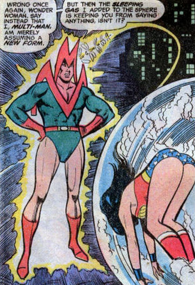 Через некоторое время на людей в центре Нью-Йорка нападает здоровенный медведь, пока Диана останавливает бандитов, скрывающихся с места преступления на вертолёте. Чудо-Женщина и тут вовремя успевает предотвратить кровопролитие, но медведь исчезает так же внезапно, как и появился. В следующий раз бандитам прислуживает уже огромная змея, но на сей раз Диане удаётся узнать, кто этой змеёй прикидывается. Злодея зовут Мультимэн, и он умеет всячески менять внешность (и размер). Он обдалбывает Чудо-Женщину подавляющим сознание газом, но Диана преодолевает действие этого газа. Мультимэн превращается в слона, но Чудо-Женщина его заарканивает и приказывает превратиться в пчелу. Против силы волшебного лассо не попрёшь. Мультимэна прячут в баночку до востребования. А Диана Принс устраивается работать секретаршей в ООН.