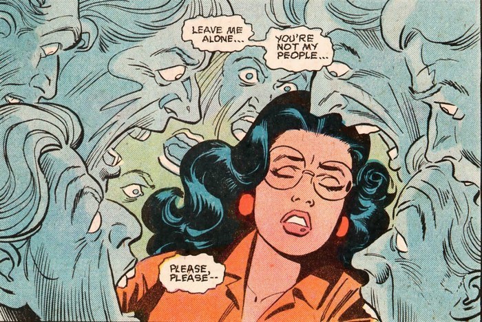 А посему предлагаю начать с комикса Wonder Woman #249 за ноябрь 1978 года, с историей от Джека К. Харриса и рисунком от Хосе Дельбо. Чудо-Женщина (Диана с Райского острова) посещает похороны Стива Тревора, и там встречает Шайеру Холл (Орлицу) и Грега Тревора, брата Стива Тревора. Грег сообщает, что работает на тайную правительственную организацию, и эта организация недавно узнала, что террористическая группа «Беспокойство» (U.N.R.E.S.T.) собирается напасть на Лигу Справедливости. «Беспокойство», это типа как Братство Стали из вселенной Фоллаута, только наоборот, цель группы – обнародование высоких технологий, которыми пока владеют единицы. Ну типа, компьютеры и телепортеры Лиги Справедливости, всё такое. «Отдайте всему миру свои технологии или умрите». Радикальные ребята.