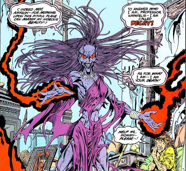 Тема Распада продолжается в комиксе Wonder Woman #4 за май 1987 года, от Лена Уайна и Джорджа Переса. Дом Капателисов рушится – но Диана со своей сверхчеловеческой скоростью вовремя выносит Джулию и Ванессу и оставляет в более-менее безопасном месте. Ванессе очень плохо – после нападения демона она теперь едва жива и выглядит старше, чем мама. Диана клянётся, что найдёт способ Ванессу спасти – и отправляется в погоню за демоницей, которая уже улепётывает. Догоняет демоницу Диана в центре Бостона, нападает – и после ожесточённой схватки побеждает и уничтожает демоницу. На следующее утро газеты пестрят заголовками про таинственную «Чудо-Женщину».