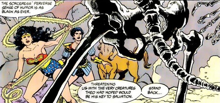 Через некоторое время на Олимп призывают уже Чудо-Женщину, но вовсе не для приватной аудиенции с Зевсом. Диане дают новое задание – спуститься в засиженные демонами пещеры под Темискирой, где каждый из богов выдвинет ей какой-нибудь челлендж. Финальная цель – добыть оттуда «Величайшее сокровище Зевса». Ну, почему бы и нет. Если ей это удастся, боги перестанут сердиться за то, что Диана отказала Зевсу, ну и в процессе Диана сможет покопаться в себе и узнать, кем ей быть дальше. Ипполита волнуется, но Диана и рада фрустрацию на ком-нибудь выместить, так что она надевает комплект амазонской брони, хорошенько вооружается – и спускается к Роковым Вратам (Doom Gate). И там на Чудо-Женщину сразу нападает гекатонхейр Котт, но Диана его довольно быстро умножает на ноль. А вот следующий противник опаснее – семирылый пятиху семиглавая огнедышащая Гидра! Как Чудо-Женщина справится с ней? Продолжение следует!