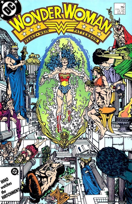 Сегодня же начнётся новый том и жизнь новой Чудо-Женщины в новой вселенной, на Новой Земле, с комикса Wonder Woman vol.2 #1 за февраль 1987 года, с историей от Грега Поттера и Джорджа Переса и рисунком от Джорджа Переса. Итак, прошлое. Боги Олимпа спорят, как вернуть себе былую популярность – им поклоняются уже не так активно, как раньше. Арес предлагает запугать народ, Артемида – создать расу воительниц, которые будут народ просвещать. Зевс и Гера из процесса принятия решений самоустраняются. В итоге Арес планирует захватить власть на Олимпе, а несколько богинь и Гермес решают действовать по-своему. Они отправляются к Пещере Душ, где мать-земля Гея держит души всех женщин, несправедливо убитых мужчинами. Оттуда богини извлекают все души, кроме одной, особенной, и вкладывают в специально созданные взрослые женские тела. Так родились амазонки. Двум амазонкам, Ипполите и Антиопе, Гея дарит особые пояса, дающие невероятную силу. Под командованием Ипполиты и Антиопы амазонки основывают город-государство Темискира.