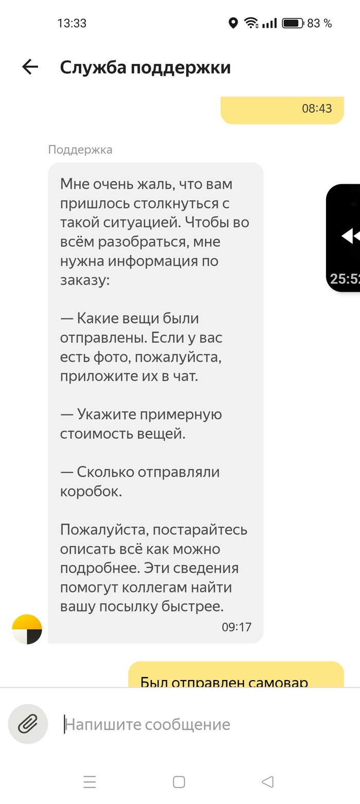 Не секрет ,что яндекс стал возить посылки в другие города,завлекая дешевой доставкой,но при этом никакой ответственности,я так понимаю ,не несет.весь оборот в электронном виде,никаких квитанций,чеков и т.д.вот я и решил впервые воспользоваться этой службой.Результат плачевный.6.09 из Самары в Москву был отправлен самовар стоимостью 30 т.р.,заказ LO-689343008.,12.09 посылка должна была приехать в пункт. Однако не доехала,мной было получено оповещение,что по техническим причинам не смогли доставить и заказ, типа,возвращается ,аж 28.09.,т.е.он пешком пошел из Москвы 2 с лишним недели.Переписка с поддержкой ничего не дала ,предлагают или еше ждать 2 недели ,или обратиться в отдел на рассмотрение страхового случая в 3 т.р.т.е.утеря посылка это не страховой случай...скрины негативного опыта общения с Яндексом прилагаю.НИкому не советую данную компанию.до этого 10 лет отправлял почтой ,ничего ни разу не потеряли.