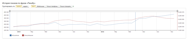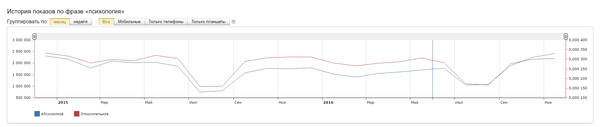 Работать с аналитическими технологиями просто: нужно зайти на сайт, напечатать в строке ключевые слова, и выбрать из предлагаемого списка период времени, который должен охватить поиск. Построение графика занимает считанные секунды.