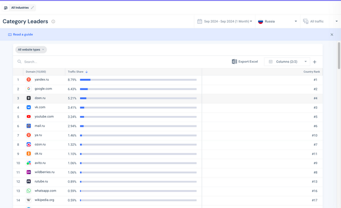 Итак, что мы имеем. Компании VK принадлежат 2 самых трафиконосных площадки на данный момент - Дзен и ВК-видео + принадлежат ОК и разумеется mail.ru с его Моим Миром. Даже если посмотреть через similarweb - становится понятно, насколько Дзен и ВК больше остальных платформ, что подтвердил эксперимент по количеству просмотров/охватов.