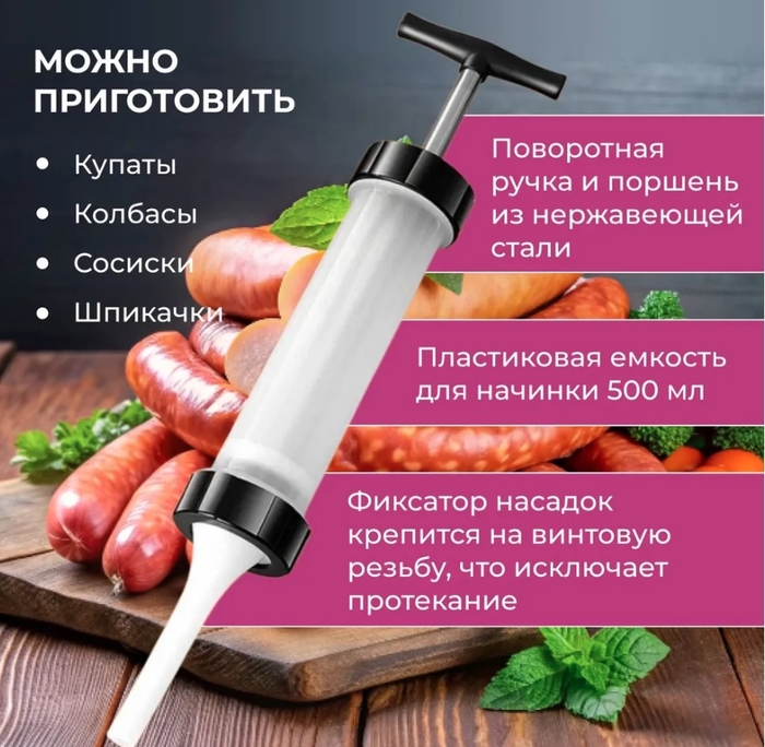Скажу сразу, для моих целей он точно не подходит, возможно конечно виноват я сам, т.к. у меня фарш из грудки без жира и даже воды я не добавлял, получился довольно плотный и чтобы выдавливать его в это узкое горлышко (я взял самое маленькое 1.5 см) нужно приложить немалые усилия, я бы даже сказал БОЛЬШИЕ. Я буквально был весь мокрый, когда закончил давить эти колбаски))