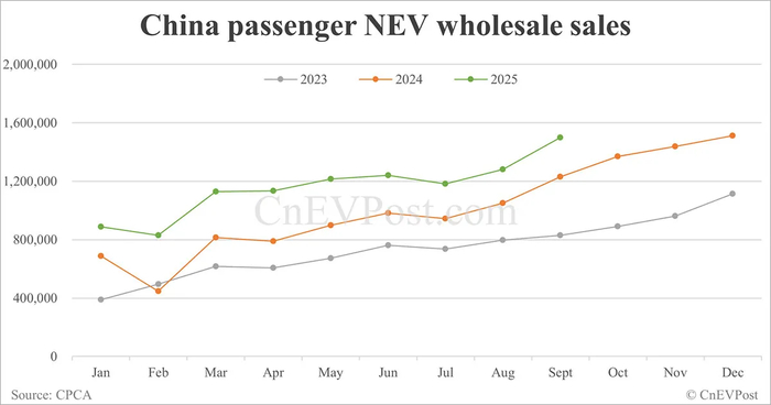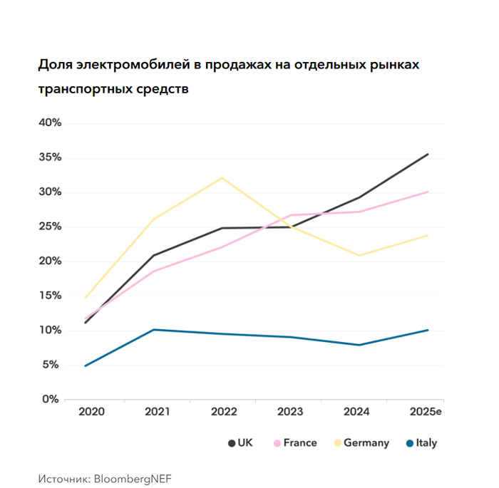 Продажи электромобилей в 2025 г. (янв.-сент. 2025 г.) по сравнению с 2024 г. (янв.-сент. 2024 г.), % с начала года