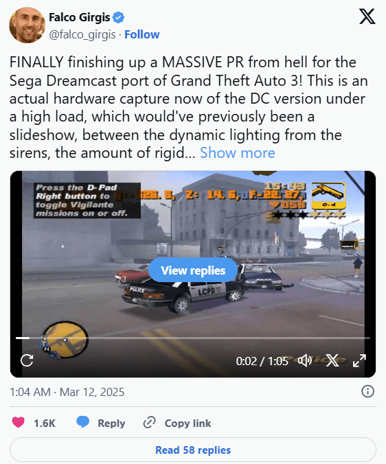 Фанатский порт GTA 3 на SEGA Dreamcast скоро получит невероятную оптимизацию