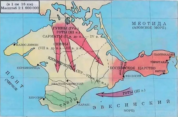 В 110 – 108 годах до нашей эры Боспорское царство разгромило Малую Скифию. Затем греков разбили римляне, и значительная часть полуострова перешла под власть Рима.