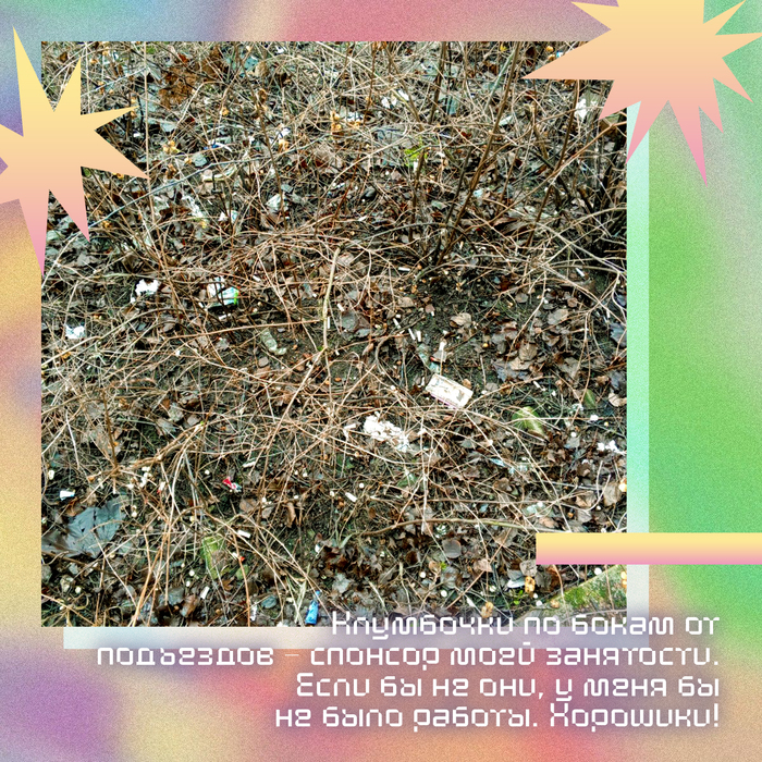 В первый же день новый двор встретил меня так, будто его полгода никто не убирал. Мусор в траве, мусор на дорожках, мусор в мусоре. Казалось, сами кусты роняли фантики и швырялись окурками.