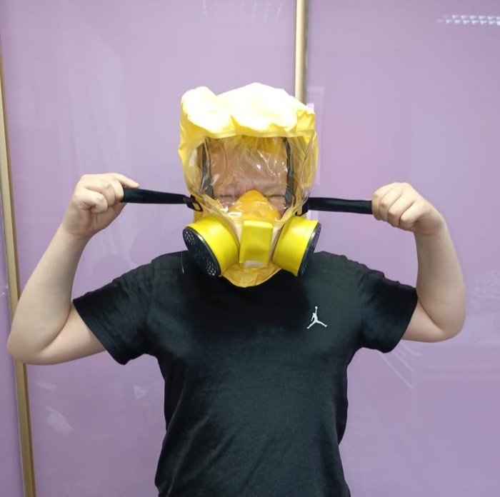 Взрослые надевают на себя самоспасатель в первую очередь!
