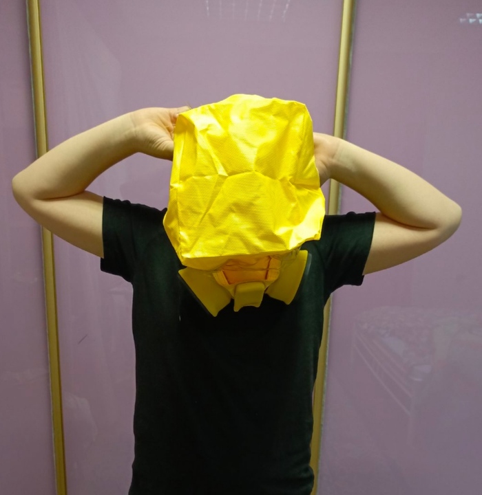Если у вас длинные волосы обязательно заправьте их внутрь самоспасателя, чтобы шея была открытая!