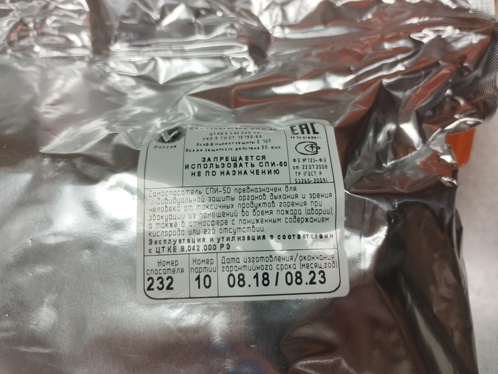 - Самоспасатель просрочен, срок хранения 5 лет;