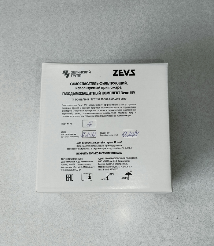 Информация будет немного повторяться, так как перекрещиваются два рассказа, один рассказ про фильтрующие самоспасатели и второй рассказ конкретно о моделе Зевс 15 У, где цифра 15 обозначает время защитного действия.