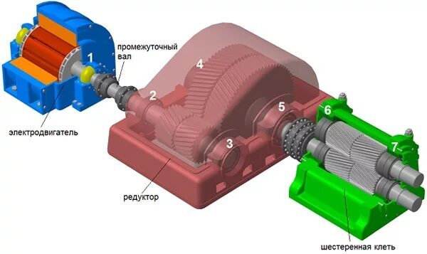 Но эта громоздкая конструкция лишь элемент главной линии прокатного стана, включающий два шестеренных валка с равным числом зубьев. Она предназначена для разделения крутящего момента, передаваемого от вала главного электродвигателя или редуктора на прокатные валки. Представляете размеры стана, в котором клеть выполняла свою функцию?