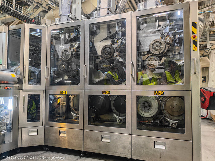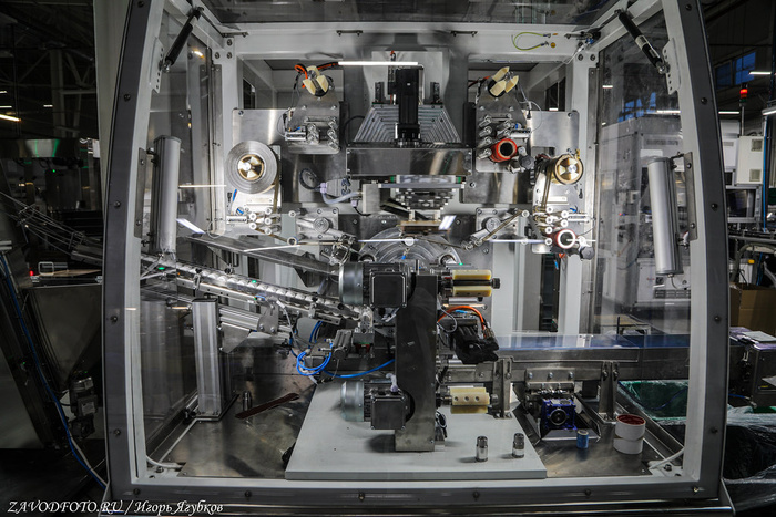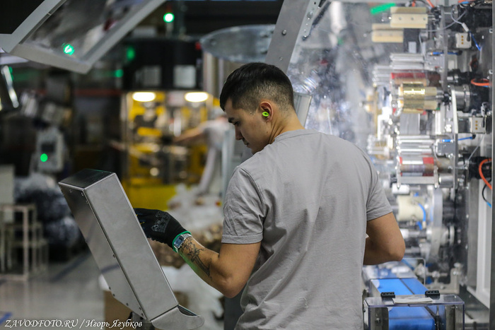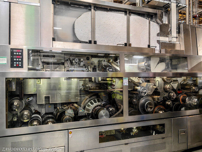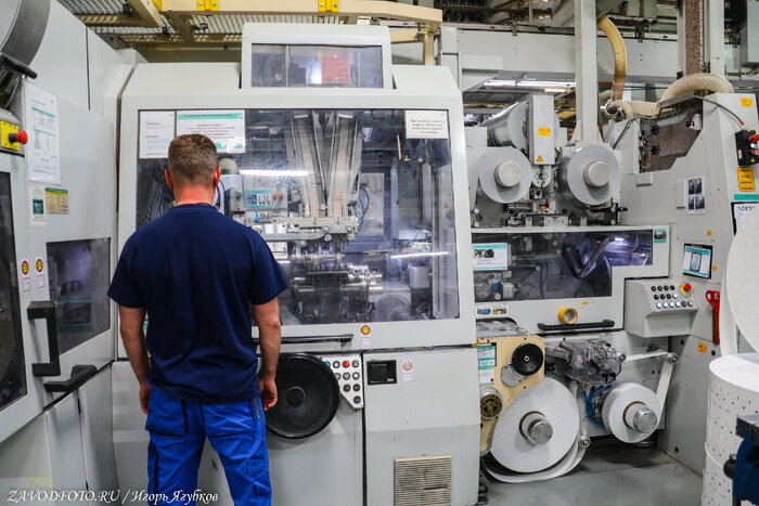 Финиш всё ближе. Далее следует упаковка готовых сигарет в пачку. Наносится специальная марка, затем пачка оборачивается в полипропилен с разрывной ленточкой (это способствует сохранению герметичности и необходимой влажности). Затем формируется блок, обернутый полипропиленом. Блоки укладываются в короба, которые ставятся на паллету. В процессе упаковки на каждой пачке сигарет печатается уникальный дата матрикс код, предназначенный для отслеживания сигарет. Вот и получается, местные сигареты состоят из табака, а не из бумаги, и какой-то химии в них нет, лидер не может себе позволить играть с качеством. А вот нелегальные сигареты, доля которых на российском рынке сейчас превышает 13%, совсем не гарантируют того, что у них даже на упаковке написано. Здесь у потребителя нет никаких гарантий ни в отношении используемого сырья, ни в отношении добавок. Подпольным фабрикам отдел контроля качества не нужен.