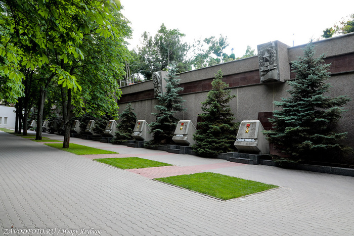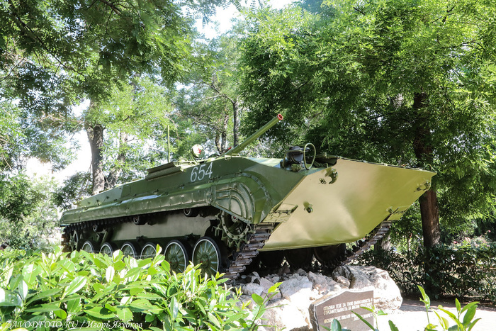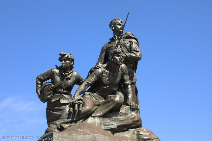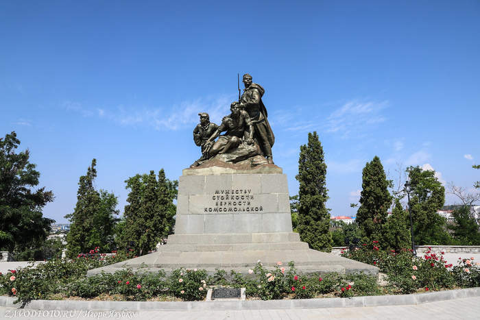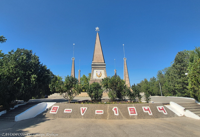 По центру Обелиск Штык и Парус в честь города-героя Севастополя является частью Мемориала победы, который был построен в 1977 году. Памятник, представляющий собой 40-метровую стилизованную композицию штыка и паруса. Монумент символизирует боевое содружество армии и флота, сражавшихся за Севастополь в годы Великой Отечественной войны.