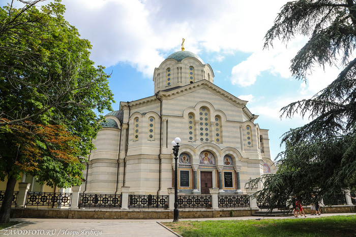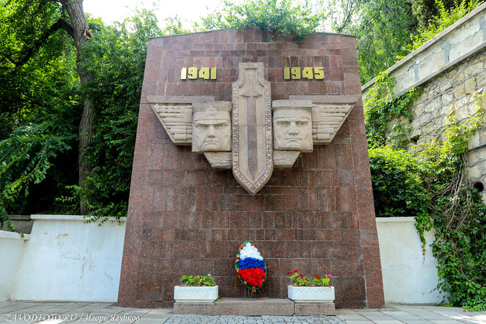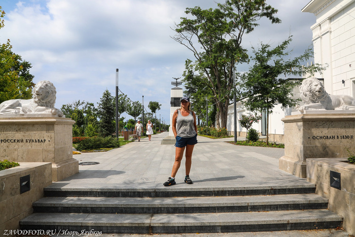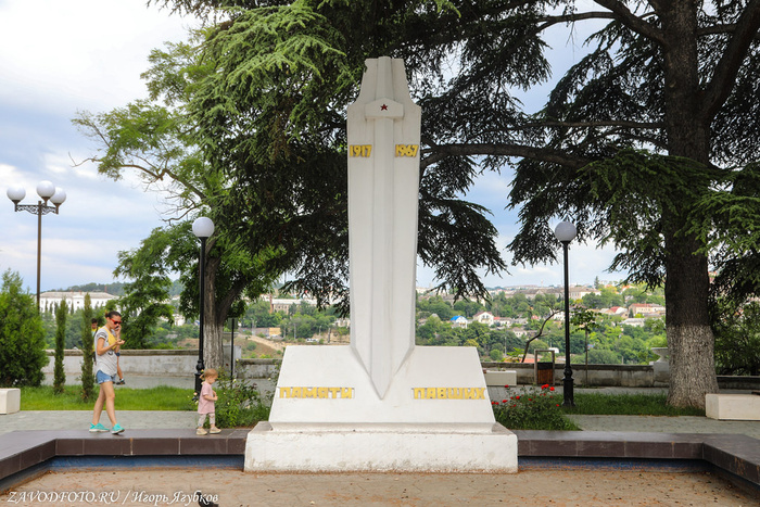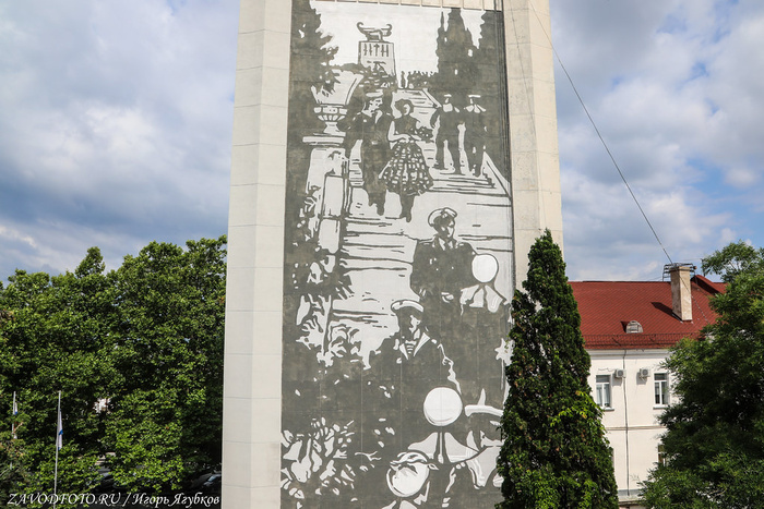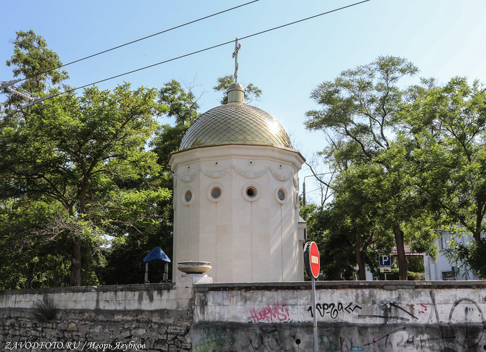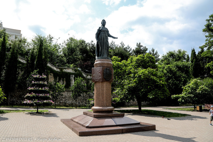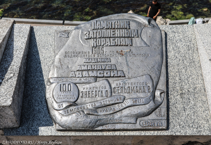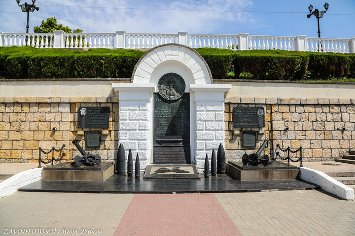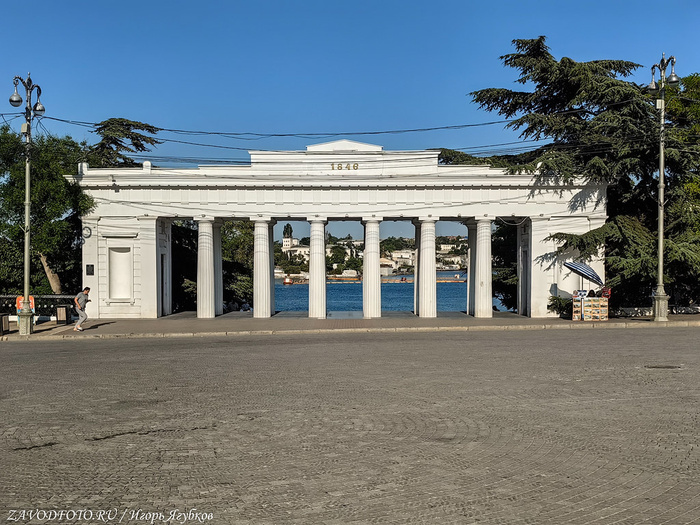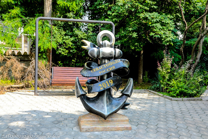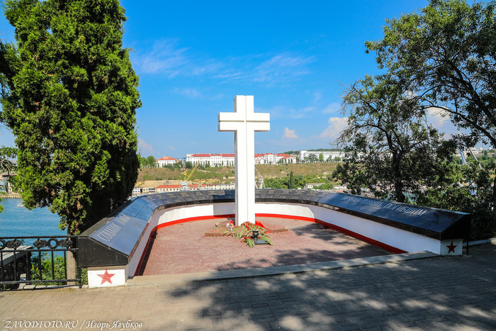 Памятник затопленным кораблям. Кульминацией Крымской войны стала осада Севастополя, проходившая на протяжении 1854–1855 годов. В течение 349 дней русская армия отражала атаки объединенных сил Британской, Французской и Османской империй. 11 сентября 1854 года по приказу адмирала Нахимова поперек фарватера были затоплены 7 русских парусников, благодаря чему суда неприятелей не смогли совершить рейд и Севастополь на какое-то время оказался спасен. Это событие вошло в историю, а в 1905 году близ Приморского бульвара установили памятник затопленным кораблям - 16-метровую колонну, увенчанную двуглавым орлом, держащим в клювах венок и якорь. Памятник, несмотря на обилие самодержавной символики, не стали сносить даже во времена СССР, поэтому он дошёл до наших времен практически в идеальном состоянии. Монумент является одним из главных символов города, изображен на гербе Севастополя и на реверсе недавно выпущенной 200-рублевой банкноты.