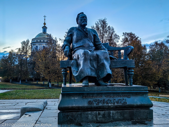 Памятник известному орловскому писателю Николаю Семёновичу Лескову установлен в историческом центре Орла неподалёку от реки Орлик. Памятник представляет собой фигуру Лескова, сидящего на скамье. Вся эта композиция выполнена из бронзы и серого гранита. Памятник был открыт 11 июня 1981 года к 150-летию со дня рождения писателя. Пять бронзовых скульптурных групп – героев произведений Лескова, на полутораметровых колоннах, окружают сидящего писателя.
