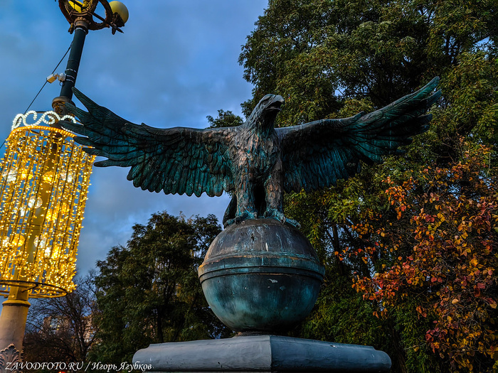 Вход на Ленинский мост украшен символом города - орлом.