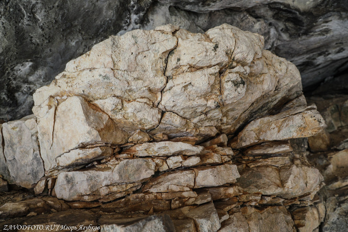 «Вода камень точит» - это как раз про Большую Азишскую пещеру в Адыгее. Благодаря течению подводных рек почти 2 миллиона лет назад в верхнеюрских известняках и образовались эти катакомбы.