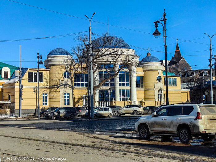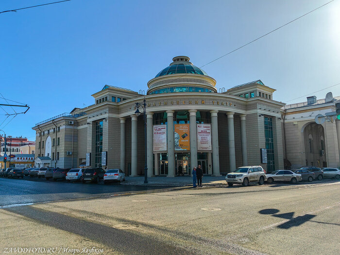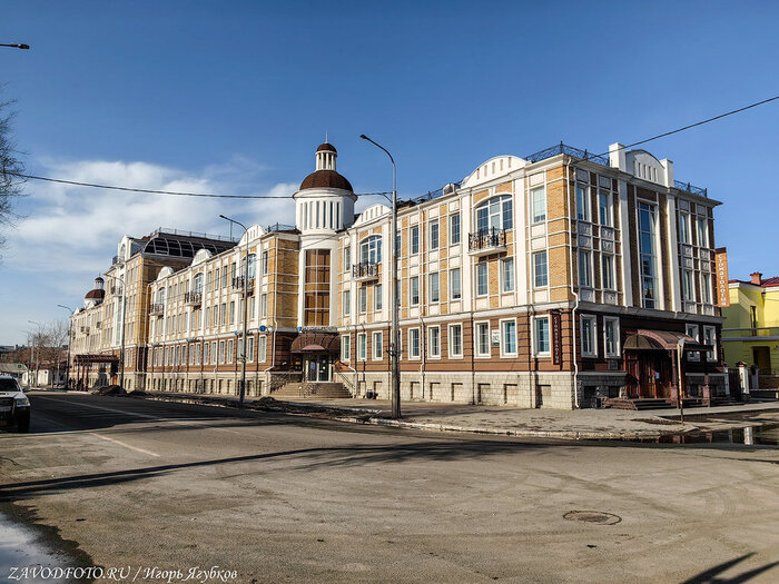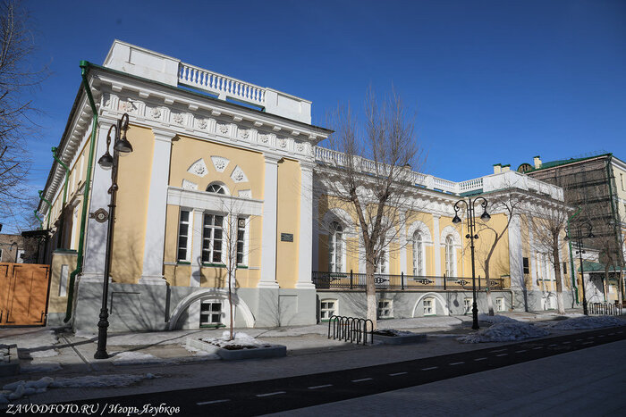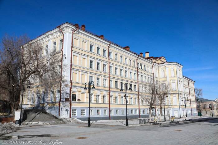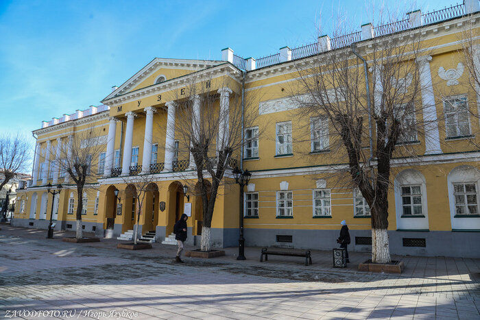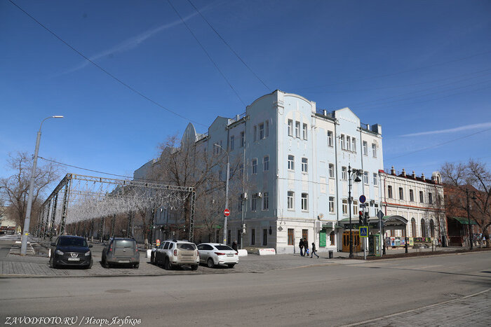 А это Дом Советов, в котором сейчас Законодательное собрание и правительство Оренбургской области. Огромное здание в стиле сталинский ампир было построено в 1940 году. На площади рядом с Домом Советов проводили парады и торжественные мероприятия. Раньше на её месте стоял Казанский собор, который в своё время был крупнейшим православным храмом России. Он украшал Оренбург на протяжении 38 лет. Судьба печальна: советская власть в 1932 году решила избавиться от сооружения.
