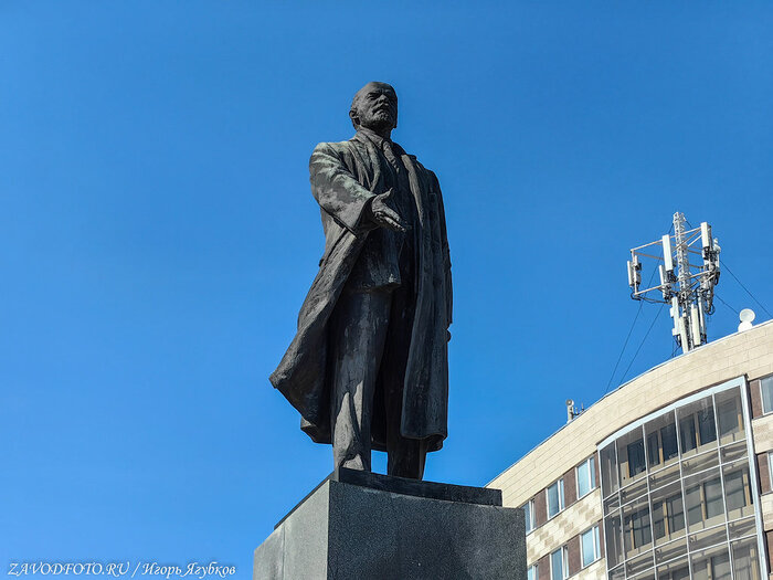 Памятник Ленину на одноименной площади представляет из себя фигуру вождя на постаменте. Высота сооружения из гранита составляет 13 метров. Скульптор В. Б. Пинчук даже был награжден медалью Академии художеств СССР за свою работу.