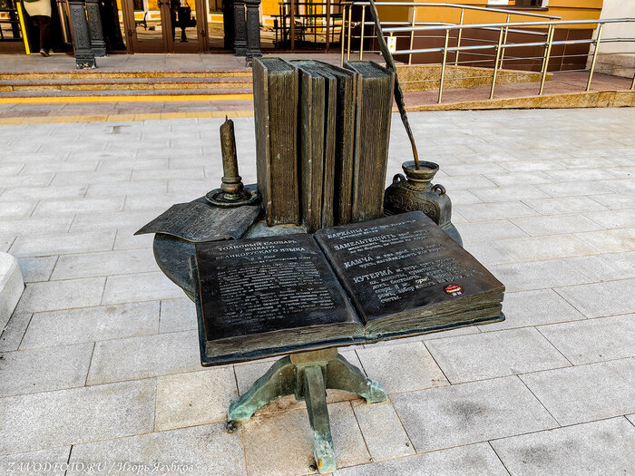 Памятник А.С. Пушкину и В.И. Далю. Монумент был установлен в 1998 году к юбилею города. В сентябре 1833 года А. С. Пушкин прибывает в Оренбург, дабы изучить историю восстания Емельяна Пугачева. Именно после этого путешествия поэт напишет монографию «История Пугачёва» и одно из своих известнейших произведений - роман «Капитанская дочка». В качестве провожатого, показавшего Пушкину Оренбург и губернию, выступил писатель и знакомый поэта Владимир Иванович Даль - тот самый автор «Толкового словаря живого великорусского языка». Вместе они посетили многие знаковые места города, в том числе Петропавловскую церковь. Она была разрушена в 1930-е годы, а в конце девяностых на её месте воздвигли памятник Пушкину и Далю. Оба великих литератора изображены в полный рост, а сама сцена изображает один из моментов прогулки по Оренбургу.